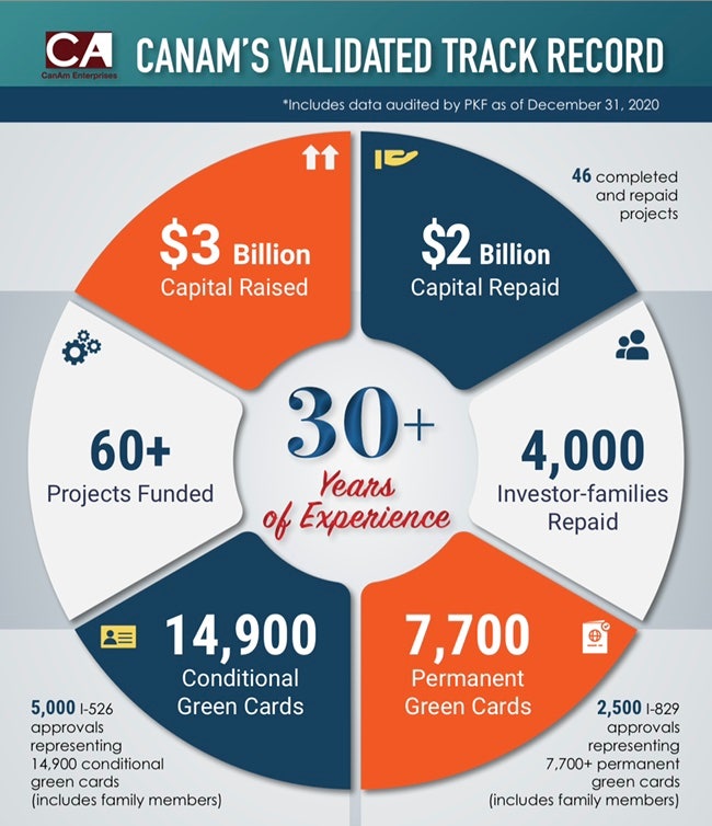 현재 Can-Am은 64차 EB-5 프로젝트를 진행하고 있으며 한국에서 10세대 투자이민을 모집하고 있습니다. 나스닥 상장사 뉴포트리스에너지(New Fortress Energy)가 텍사스에 북미 최대 규모의 녹색수소 공장을 짓는 프로젝트인 캔암(Can-Am) 프로젝트의 64단계는 바이든 행정부의 인플레이션 감면 법안에 따라 정부의 적극적인 지원을 받고 있다. Can-Am의 오랜 경험과 전문적인 운영을 통해 투자이민자들을 중요한 인프라 프로젝트에 이식하여 안전하게 영주권을 취득하고 손실 없이 투자금을 회수함으로써 수년 동안 지속될 경제 불황에 대비하는 것을 목표로 합니다.