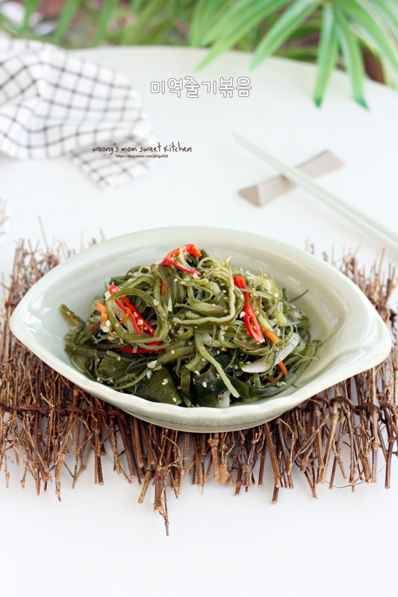계절에 상관없이 젓가락과 잘 어울리는 작은 반찬, 미역줄기볶음을 만들었어요. 남편이 제일 좋아하는 반찬이라 저희도 도시락 반찬으로 자주 만들어 먹는데요. 미역줄기의 짠맛이 잘 우러나기만 하면 너무 짜지 않게 입맛에 맞게 조리할 수 있습니다.