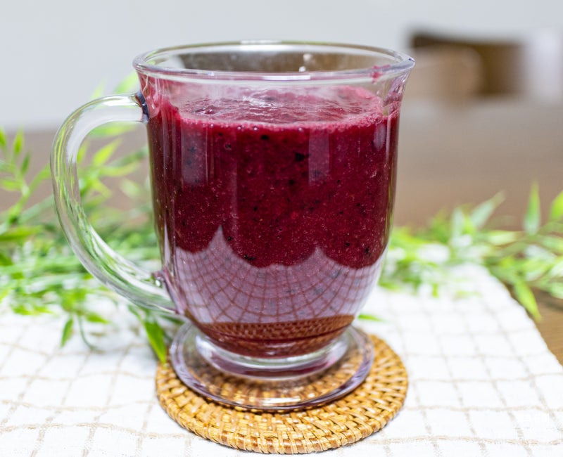 보라색 음료로~ 독특한 느낌으로~ 단맛이 더 좋다면 바나나 비율을 높여줬으면 좋겠어~
