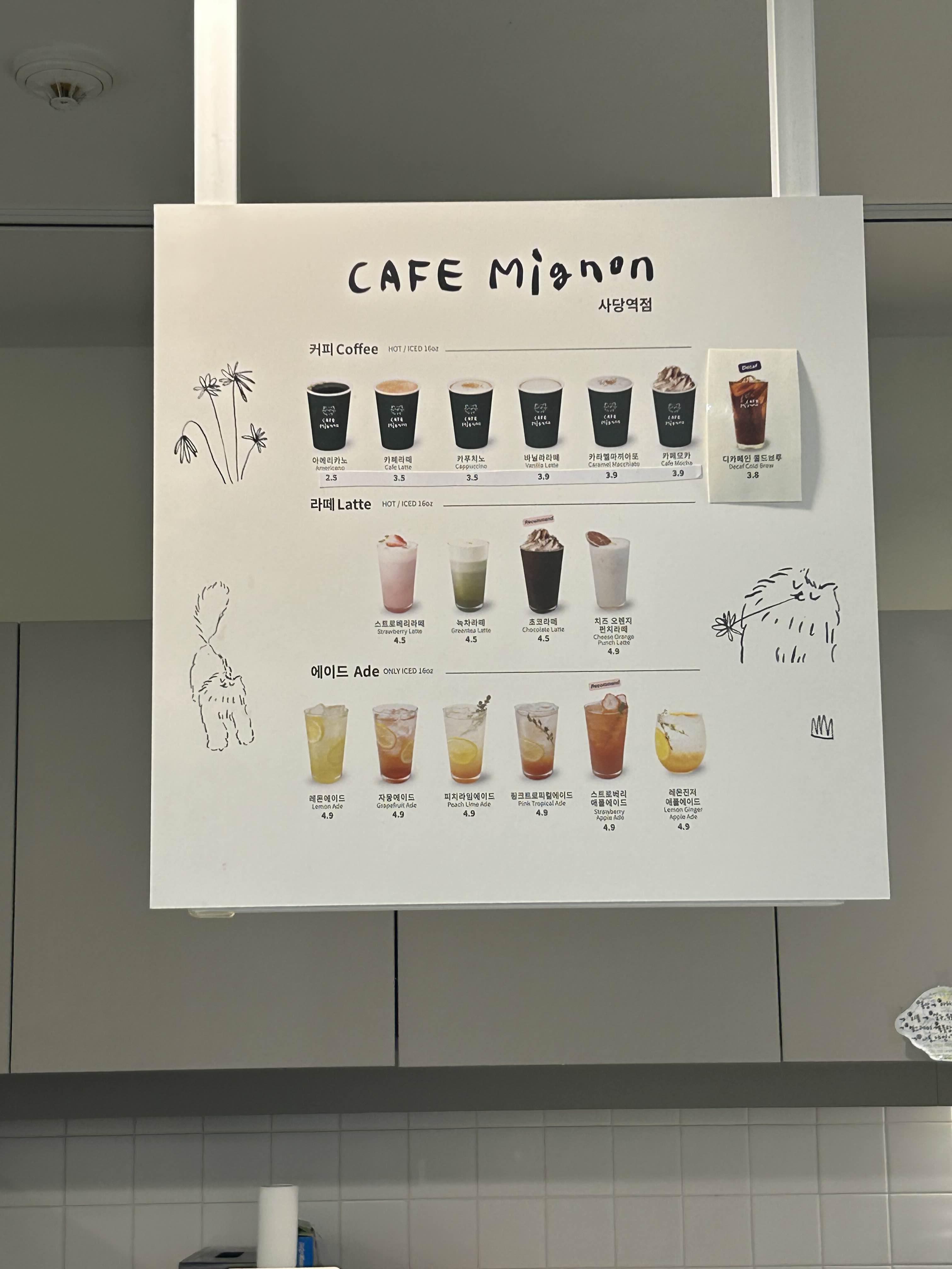 사당역 카페미뇽 메뉴 및 가격 안내