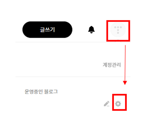 계정 만들다 ~ 후에 하다 화면의 톱니 바퀴 클릭하면 이야기 블로그의 관리 페이지로 가다.
