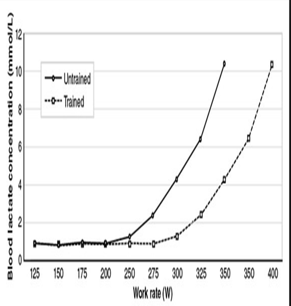 운동선수가 더 잘 훈련하면 동일한 훈련 강도로 훈련하기 전보다 혈중 젖산 농도가 낮아집니다.