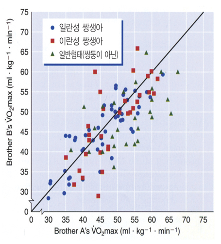 유전적 요인과 환경적 요인 모두 최대 산소 섭취량에 영향을 미칩니다.