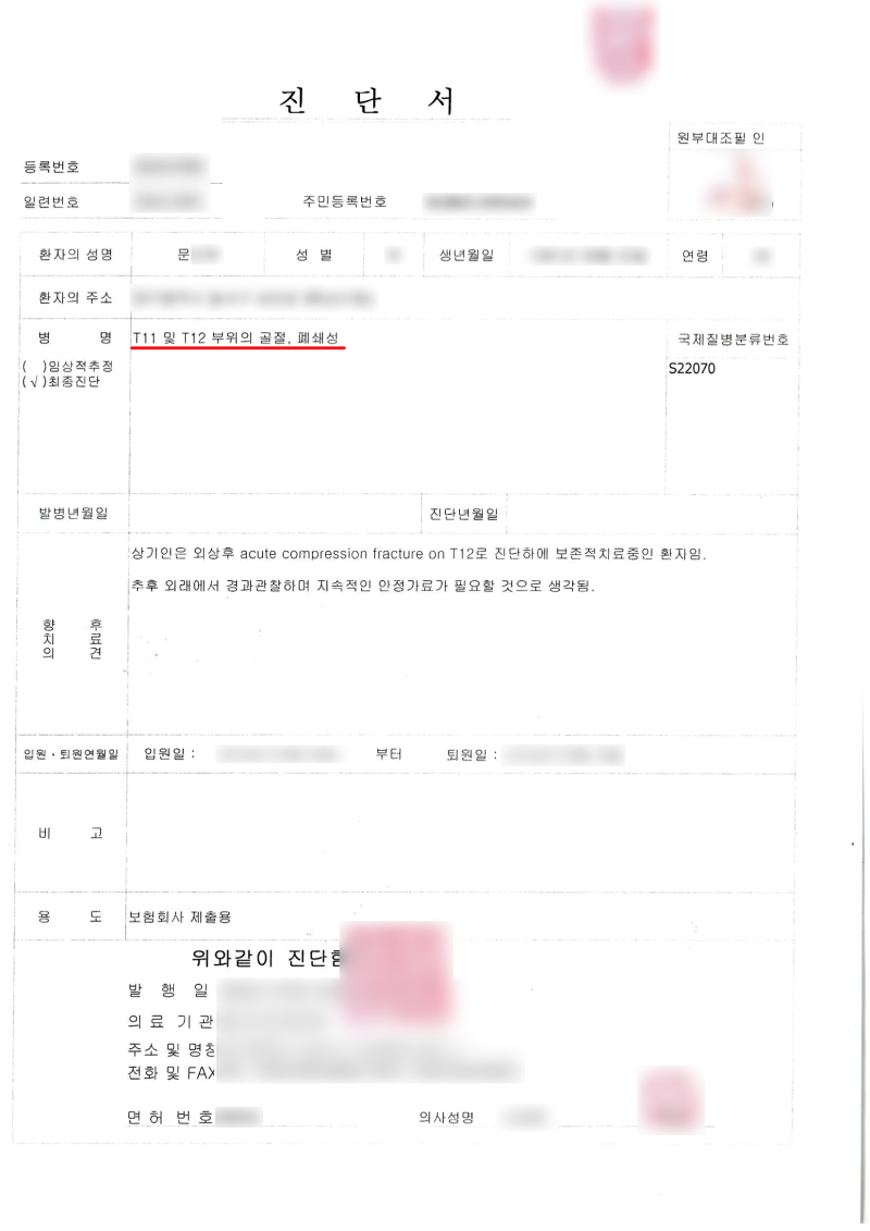 척추압박골절 후유증 면제 또는 면제를 위한 주의사항은 기본적으로 후유장해 증명서를 발급받아야 하며, 이 판정은 통상 사고일로부터 6개월 후에 이루어진다. 함몰된 뼈가 뼈까지 치유되고 안정되었을 때 시행해야 합니다. 클레임이 제기되었다고 해서 제출된 문서를 기반으로 즉시 보상 결정이 내려지지는 않는다는 점에 유의하십시오. 대부분의 경우 결제는 현장 검토를 통해 검토되지만 그 과정이 유쾌하지도 긍정적인 신호도 아니다. . 이것은 기억해야 할 메모이므로 마음에 간직하십시오. 주치의가 발급해 회사에 제출한 건강진단서로도 현장 실사를 통해 ‘제3자 상담’을 실시하는 경우가 많다. 이 과정에서 다른 결과가 확인되면 해당 행에서 합의에 도달합니다. 결국 필요에 따라 청구가 처리되지 않고 트라우마 기여도(골다공증 기여도)가 줄어든 경우입니다. 이 경우 골절을 초래하는 골약화 정도를 산정하여 기여도 공제 규정에 따라 감액한다. 심사위원마다 기여 정도에 대한 견해가 다를 수 있고, 양측이 이견이 있을 경우 해법을 찾지 못한 채 오랜 시간 논쟁을 벌일 수 있어 적절한 선을 찾기 어렵다. 사고 당시 회사에 청구서와 진단서를 제출했더라도 계약 당시의 직업이 사고 당시의 직업과 다른 경우에는 공제사유가 됩니다. 경우에 따라 면제될 수 있습니다. 계약자는 직무 변경 시 회사에 즉시 통보할 의무가 있으며, 이를 위반할 경우 처벌을 받을 수 있습니다. 청구인에게 부당한 사정이 있는데 회사가 원칙적으로 청구만 하는 경우 이 또한 분쟁의 요인이 될 수 있습니다. 계약은 처음부터 사고 발생 시 고위험 행위를 배상할 수 없다고 명시하고 있습니다. 예를 들어, 전문 등산, 스노클링, 스쿠버 다이빙, 시승, 보트 사고 등은 일일이 나열하기에는 너무 많습니다. 압박 골절 후유증의 증거. 원칙적으로 주치의와 상담하는 것이 긍정적이고 신뢰할 수 있습니다. 회사도 주치의의 진단을 좋아하지만 주치의의 판단이 부당하거나 장애평가에 대한 이해가 부족하다면 제3자 기관의 평가를 거쳐 후유증을 받아도 나쁠 것이 없다. 그러나 사실과 다른 과장된 장애 평가는 향후 문제를 야기할 수 있음을 인지하셔야 합니다. 약관 적용 및 결정 방법에 대한 논쟁은 사실상 청구인과 회사 간의 장기 줄다리기입니다. 그에 따라 청구 방향을 계획하십시오. 이것에 대해 모호한 불안 후유증 주장을 가진 사람들이 많이 있습니다. 많은 경험과 사례를 바탕으로 유용한 정보를 제공하고 있으니, 부족한 부분이 있으시다면 언제든지 질문해 주세요. 15년 이상의 클레임 경력과 현장 경험을 갖춘 전문 손해사정사… blog.naver.com
