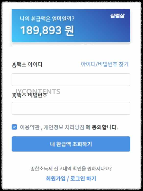 ② 홈택스 아이디&비밀번호 입력 → 나의 환급금액 조회 → 지금 환급하러 가기