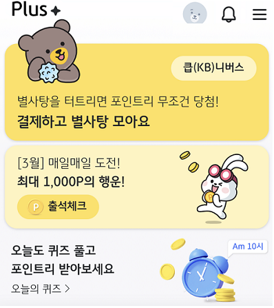 ※ 포인트는 1일 1회 출석체크 시 적립 가능하며, KB페이 결제 시 랜덤 적립도 가능합니다.